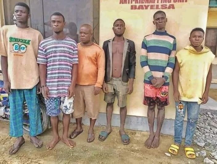 The suspects arrested are identified as follows: Obadiah Abule, 22, of Oporoma, Desmond John, 22, Daniel Tonifia,21, Diapreye Ebifadei, 29, Ibrahim Usman, 27, from Nasarawa State, and Prince You, 43, from Yenagoa LGA.