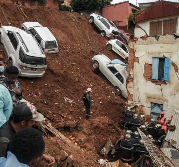 Heavy rains and flooding have plagued Madagascar for a while now, and were responsible for the car park giving way yesterday.