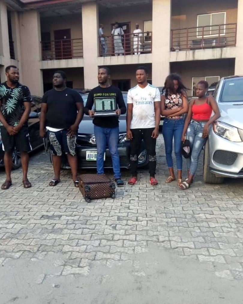 The suspects, comprising four men and two ladies are: Oghenekewe Innocent Akinnawo, Kemka Godseat Amadi, Revelation Macaulay, Damilola Adedoyin Oyinloye, Mary Ndubuisi and Jennifer Vandi.