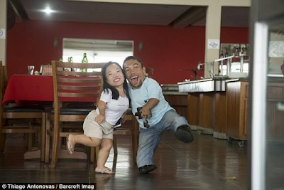 Paulo Gabriel da Silva Barros and Katyucia Hoshino both measure less than three feet tall making them the world’s shortest couple. The couple from Brazil who have proved that size doesn’t matter when it comes to love both have forms of dwarfism and stand at 34.8in and 35.2in respectively.