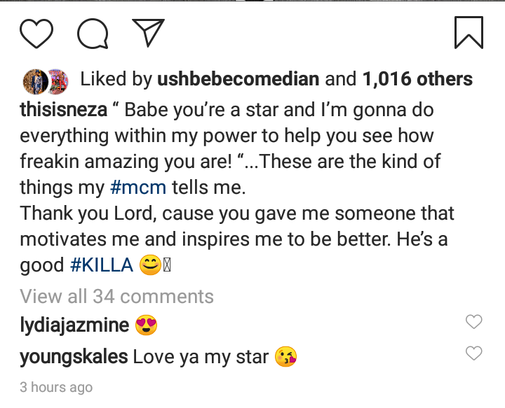 Thank you Lord, cause you gave me someone that motivates me and inspires me to be better. He’s a good #KILLA.’