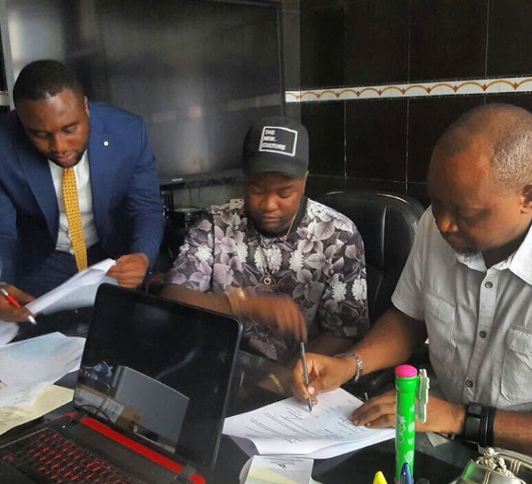 It looks like Skales issue with his record label, Baseline Records as he was pictured today signing a contract with Paul Okoye’s Upfront and Personal” global management consultancy.