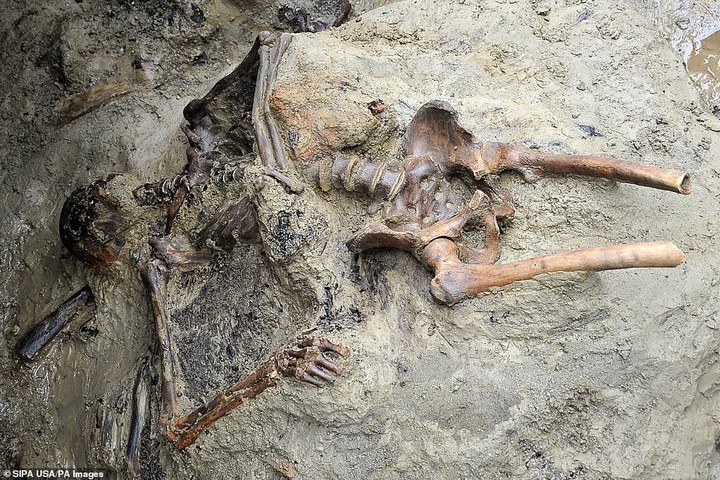 Unusually, the man’s skeleton shows his face turned upwards, suggesting that he had faced the deadly cloud roaring towards him before his death.