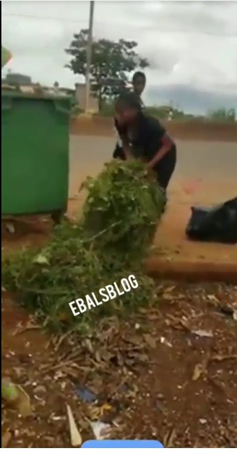 Here is the moment a lady was forced to clean up the trash she throws on the Road.
