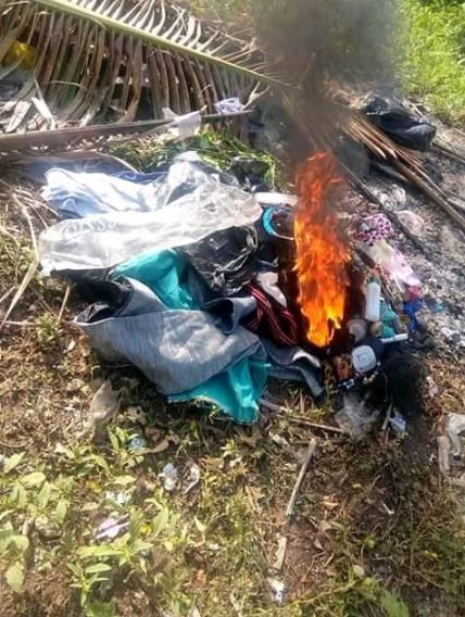 A Nigerian slay queen has given her life to Christ earlier today, she took out time to burn all of her sinful and worldly wears such as make-up kits, trousers, and wigs (hairs).