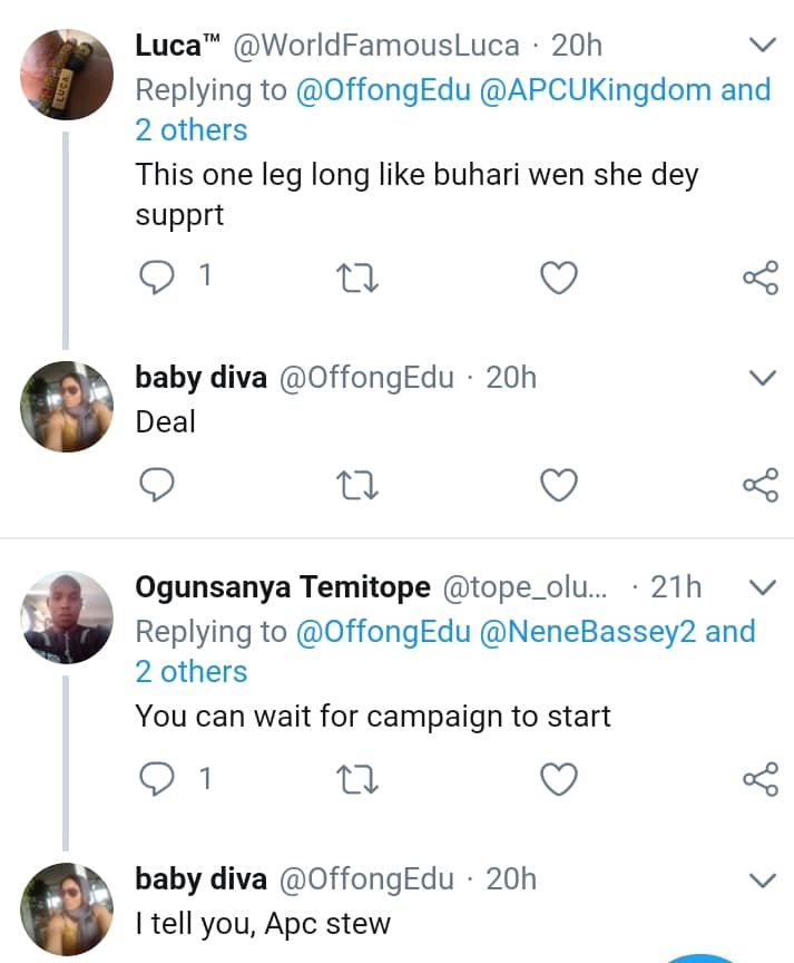 ‘Yellow Pawpaw’ beautiful slay queen, Baby Diva, with her hot long legs, dances to support President Buhari’s 2019 re-election.