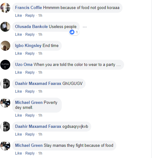 This is quite shameful! A serious fight broke out between some ladies at a public event. According to information gathered online, the fight started following a tensed argument over food at the event.