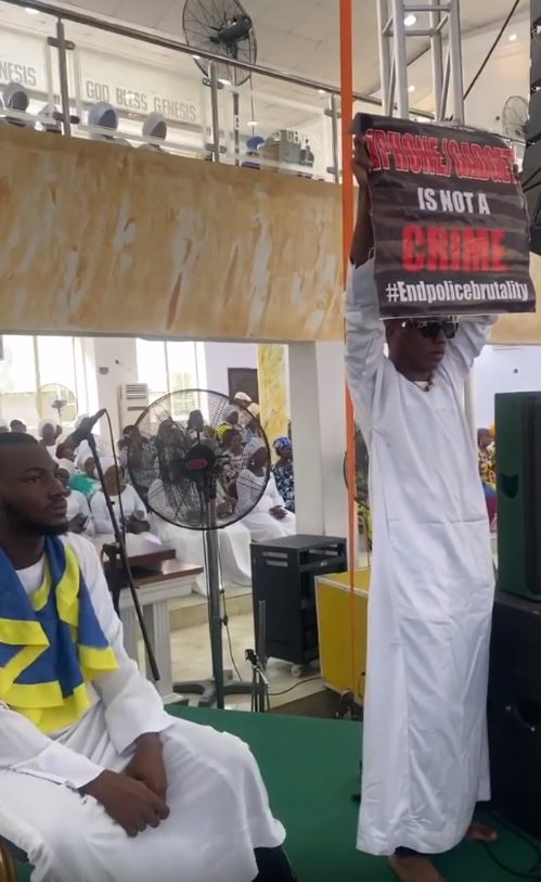 Nigerian singer popularly known as Small Doctor took the EndSARS campaign to his church today Sunday 11th October, 2020.