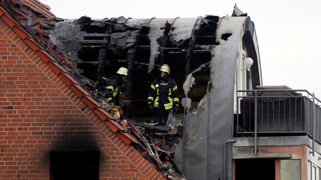 Wesel police spokesman Peter Reuters said: “What we know so far is that at 2.40pm here in Wesel, an ultralight aircraft crashed into a residential building, whose attic went up in flames.