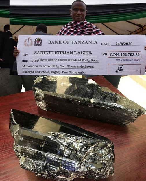 The Tanzanian government handed Saniniu Laizer a cheque for 7.74 billion Tanzanian shillings ($3.35million) for the two dark violet-blue stones during a trading event in the northern region of Manyara on Wednesday, June 24.