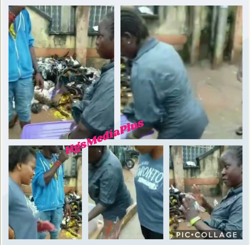 A woman who sells snacks, (fish roll, egg roll) was caught picking them from the ground close to a garbage truck to resell in Edo state.