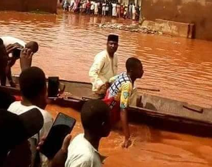 Sokoto residents are currently using canoes for transportaion after a heavy downpour in the state yesterday July 19th.