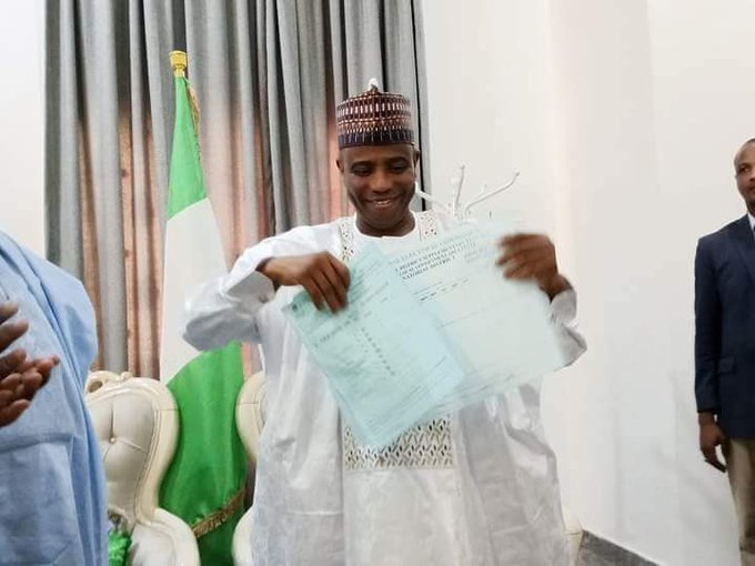Pictures of Governor Tambuwal collecting his Results sheet( Form EC8A)