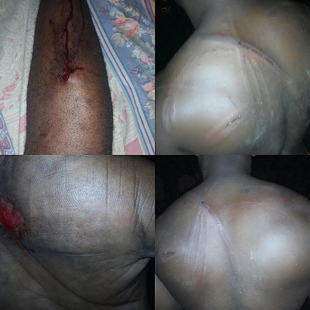 “I was beaten up for almost two hours last nite by soldiers OP MENSA because Iwas wearing a black armless and red track trouser.