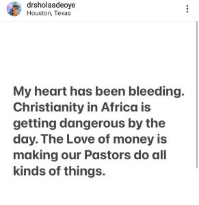 He added that “the love of money is making our pastors do all kinds of things.”
