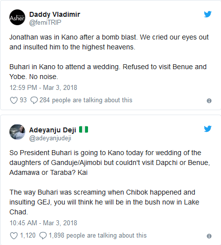 Nigerians on social media are however criticising the president who is yet to visit Benue State after the string of Fulani herdsmen killings and Dap’chi where several Nigerians have been killed and kidnapped in recent weeks.