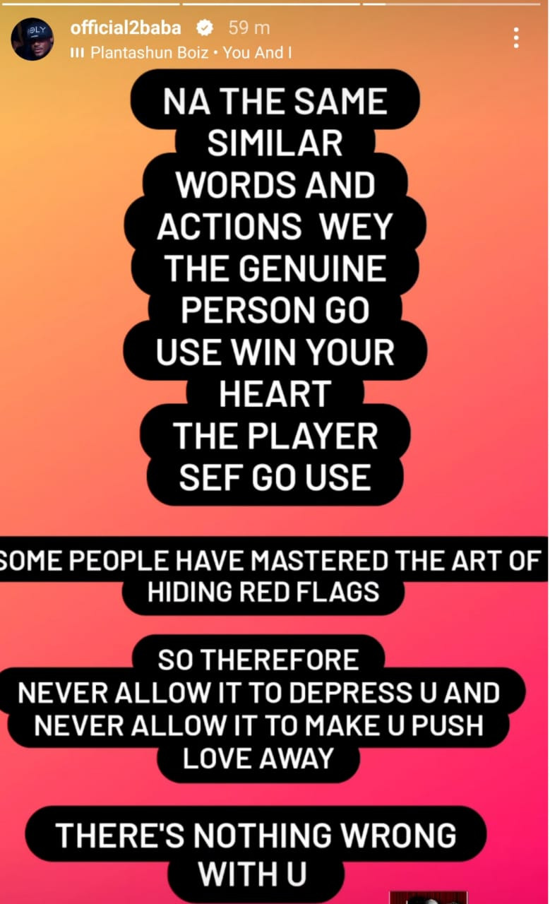 In a post shared on his Instastories, the singer stated that some people have mastered the art of hiding their red flags from their partners.