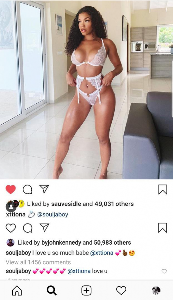 The 28-year-old rapper took to Instagram to share a photo of his new boo Tiona Fernan posing in sexy lingerie and wrote: ‘I love u so much babe @xttiona ????