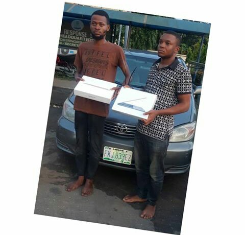 Two suspected robbers who lured a computer dealer to a desolate location and dispossessed him of 3 Apple laptops valued at N1.5 million, at gun point, have been arrested by the operatives of the Lagos Rapid Response Squad.