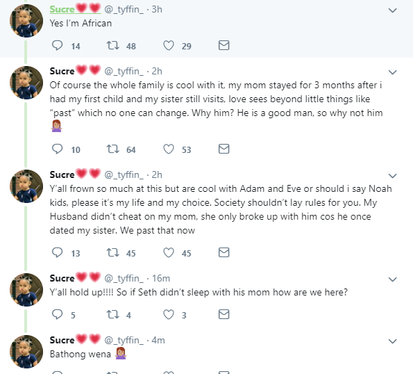 A South African lady who goes by the name @_tyffin on Twitter, caused a stir online after making a shocking revelation.