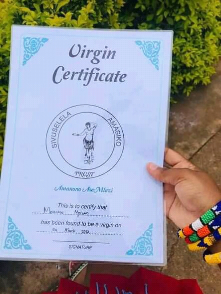 A South African lady has trended on social media after showing off her certificate of virginity.
