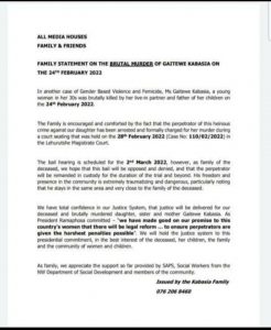 A 45-year-old man identified as Juta Mosadi, is expected to re-appear in the Luhurutshe Magistrates’ Court, South Africa, on Wednesday, 2 March 2022, in connection with the alleged murder of his 33-year-old girlfriend.