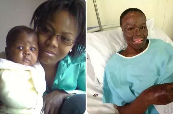 A South African lady simply identified as “Miss T” has narrated how her ex-lover doused her and her daughter in fuel, setting the pair on fire.
