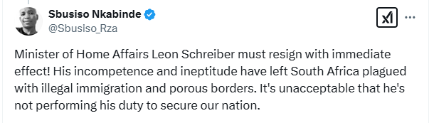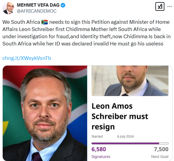 Some South Africans are calling for the removal of their Home Affairs Minister, Leon Schreiber, after Miss Universe First Runner-Up 2024, Chidimma Adeshina was spotted in Cape Town.
