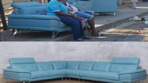 The Leather Gallery furniture store in Springfield, Durban, is meanwhile still searching for its missing blue couch worth 67,000 Rands (2 million naira).