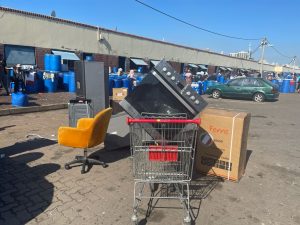 On Tuesday the Glebelands hostel in Durban (KZN) was searched by the police. The community living in block 51 of the hostel responded by throwing looted items out of the windows to avoid being caught in possession of them.