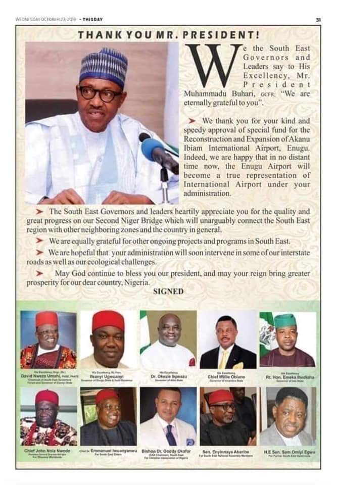 South-East Governors, Ohaneze Write Appreciation Letter To Buhari