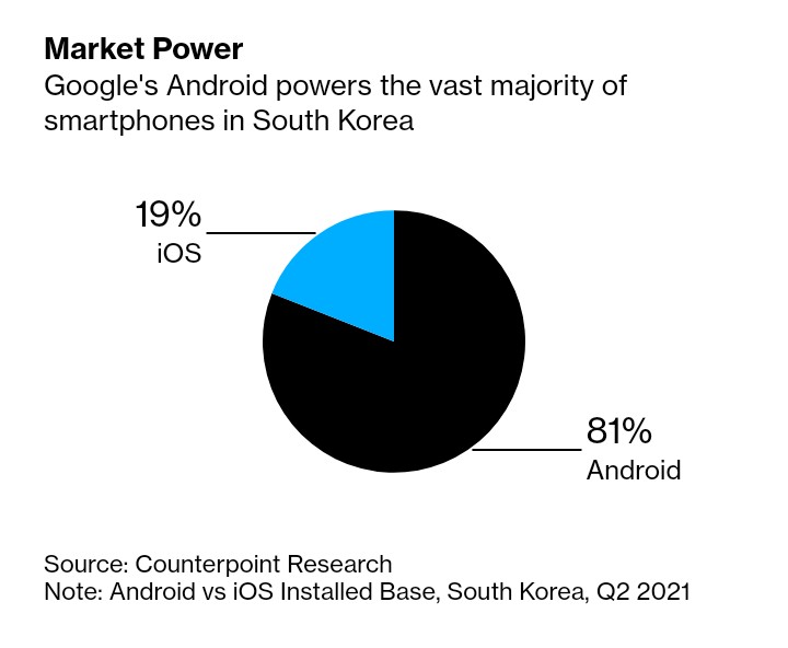 Korea in August became the first country to pass a law forcing Apple Inc. and Google to open up their app stores to outside payment systems, setting a potentially radical precedent for their lucrative operations everywhere from India to the U.S. That bill becomes effective Sept. 14, the Korea Communications Commission said in a statement. Tuesday’s 207.4 billion won fine is one of the highest levied in the country over abuse of market dominance, with only Qualcomm Inc.’s mobile chipsets drawing higher sanctions.