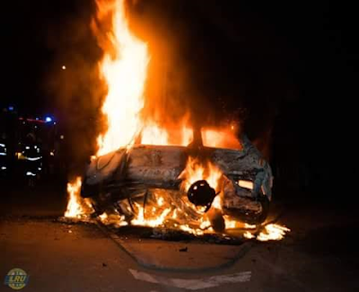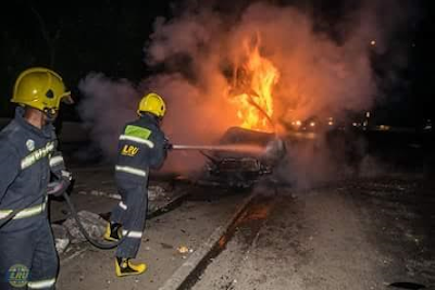 The LASEMA Response Unit fire team were on a rescue operation at Anthony Oke after a car rammed into a billboard and caught fire in the early hours of Wednesday.
