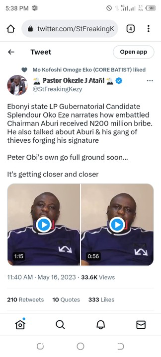 Ebonyi state LP Gubernatorial Candidate Splendour Oko Eze narrates how embattled Chairman Aburi received N200 million bribe.