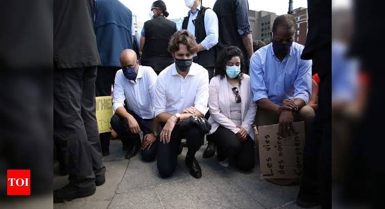 'Stand Up To Trump!' Canada Protesters Shout To Trudeau Who Kneels At Anti-racism Rally - 9jaflaver