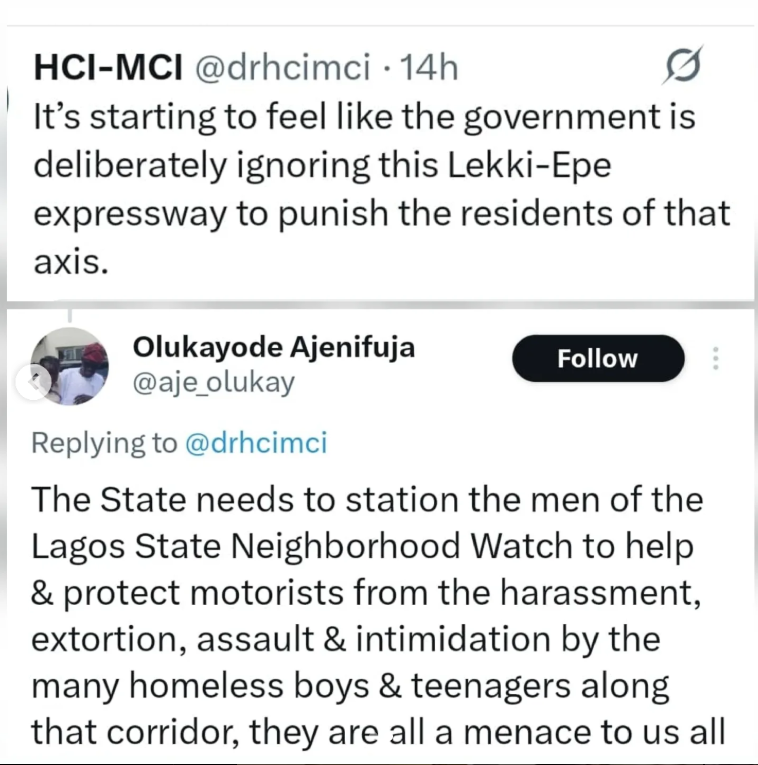This comes after an X user, raised concerns over harassment and extortion by homeless boys and teenagers along the Lekki-Epe Expressway, calling on the state government to take urgent action.