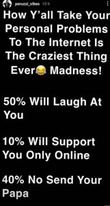 Nigerian singer, Peruzzi has advised Nigerians to stop taking their personal problems to social media because it won’t end well.