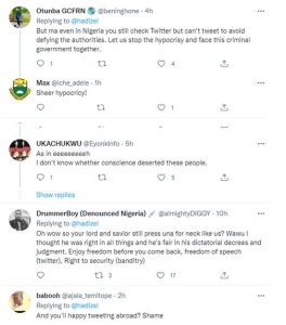 Nigerians attacked her, saying it is a shame that she does not have social media freedom in her country, but can run abroad to breathe freely when it comes to Twitter.