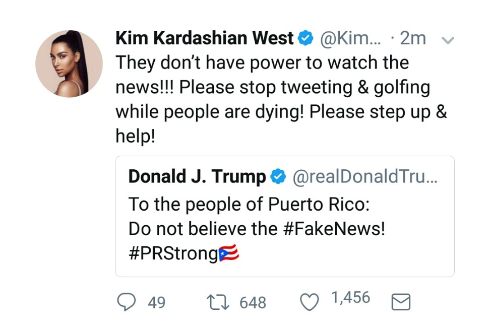 The popular Reality TV star, “Kim Kardashian” has also had enough of the daily twitter rants of U.S President, “Donald Trump”. Kim Kardashian put the U.s president on blast for always tweeting while people are dying.