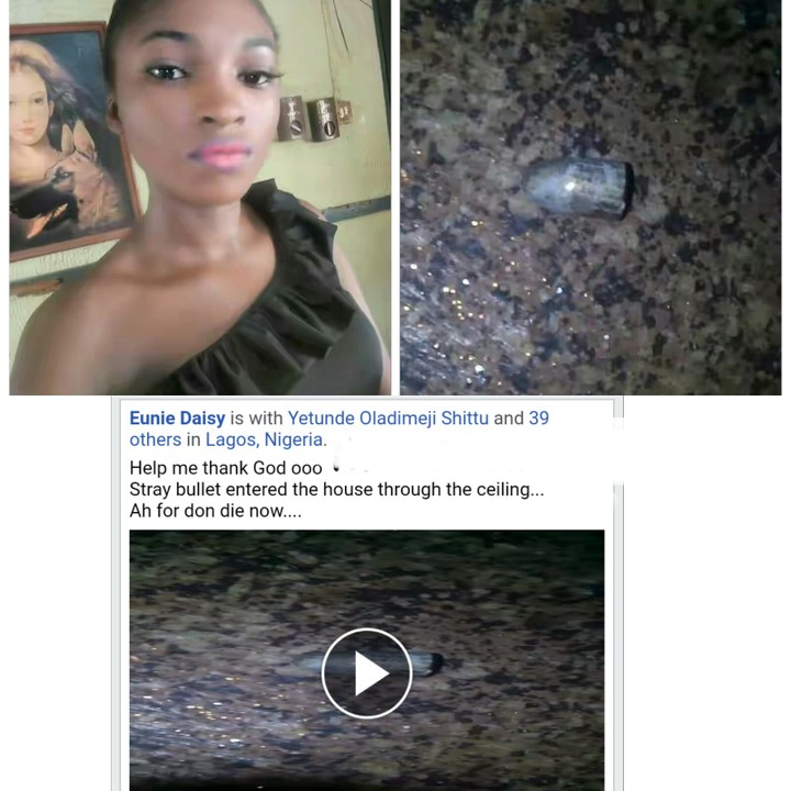 Lady reveals how stray bullet almost killed her in a sleep, today, in Ipaja, Lagos…