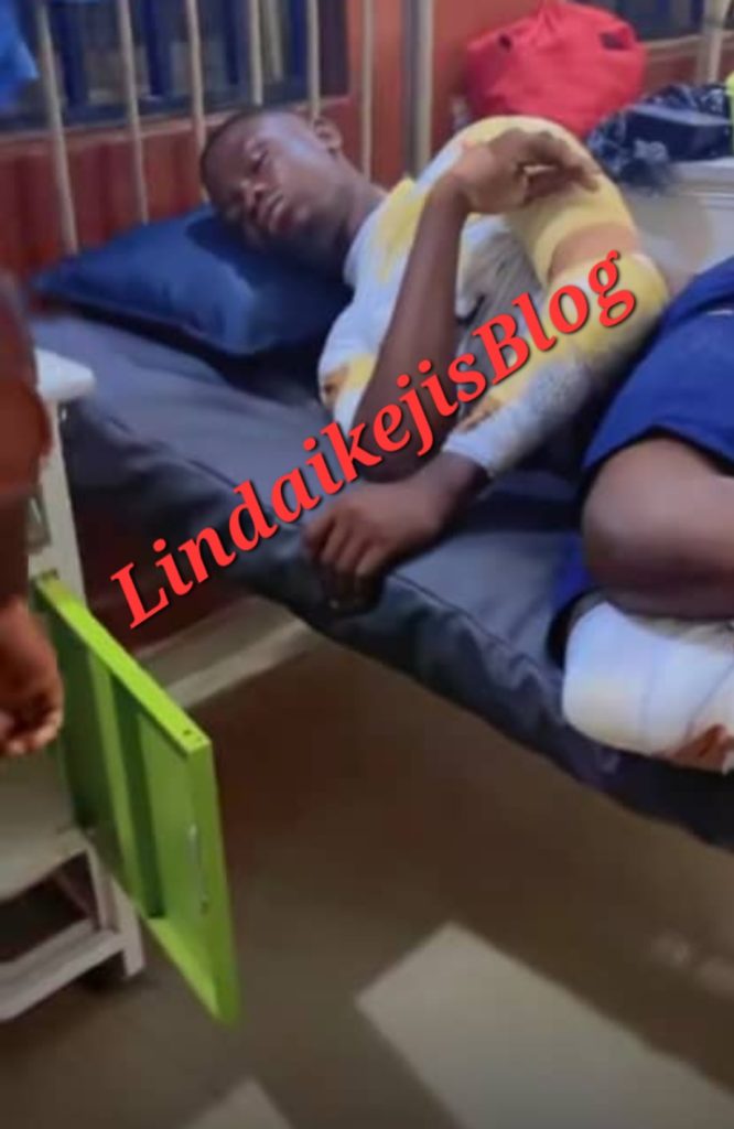 Another video shared with LIB shows John lying in a hospital bed, with bandages covering his chest, mid-riff, back, shoulder, arms, and parts of his legs.