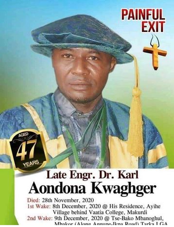 It will be recalled that Dr. Kwaghger, an Associate Professor in Mechanical Engineering department of same institution, was murdered at the premises of the JS Tarka Foundation in Makurdi on Saturday, November 28, 2020.