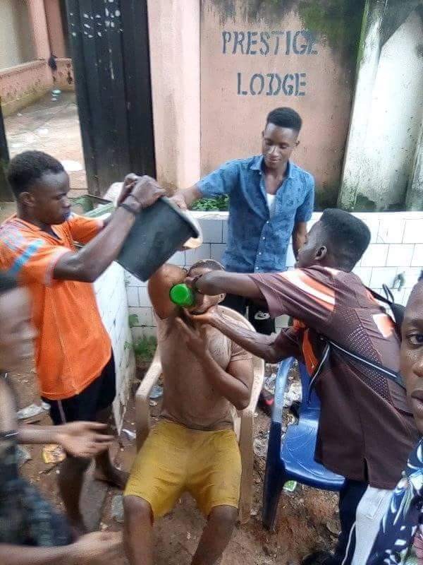 Students of the Federal College of Education (Technical) Umunze, Anambra State, are pictured celebrating after writing the final exam on Thursday.