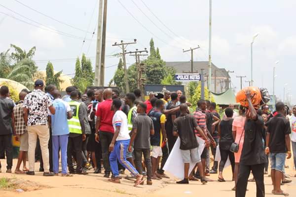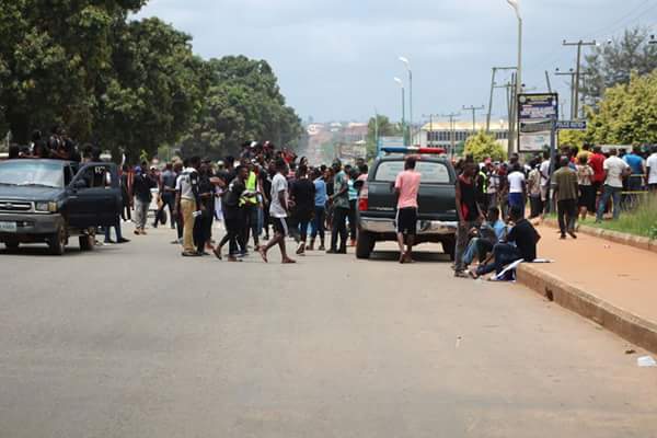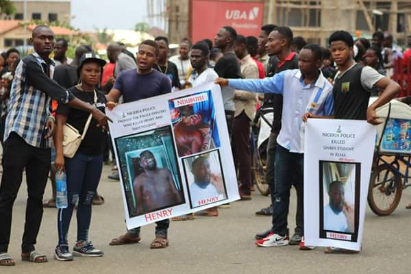 Asaba was shut down today, 4th October, 2018, when students turned out en masse to protest the cold blooded murder of their colleague Mr. Henry Nweke, who was shot yesterday, 3rd October, 2018, by police operatives during the APC Senatorial Primaries, at the Federal College of Education Permanent Site, Asaba.