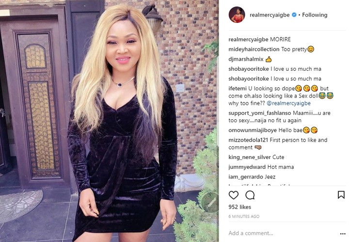 Nollywood Actress, Mercy Aigbe looks so gorgeously bright and hot in a new picture she shared which had one of her fans likening her to a sex doll.