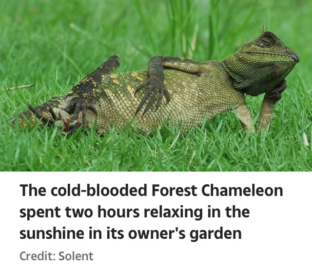 The super-chilled chameleon leant on his arm as he reclined in the sunshine.