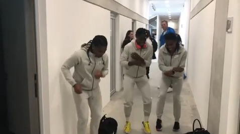Asisat Oshoala and some other super falcons were seen in Cyprus dancing zanku as they won match against Slovakia which took place today, Friday March 1. Gistvic Reports.