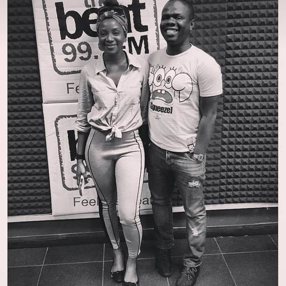 The movie star & film maker was pictured with OAP, Osi Suave who works at the radio station.
