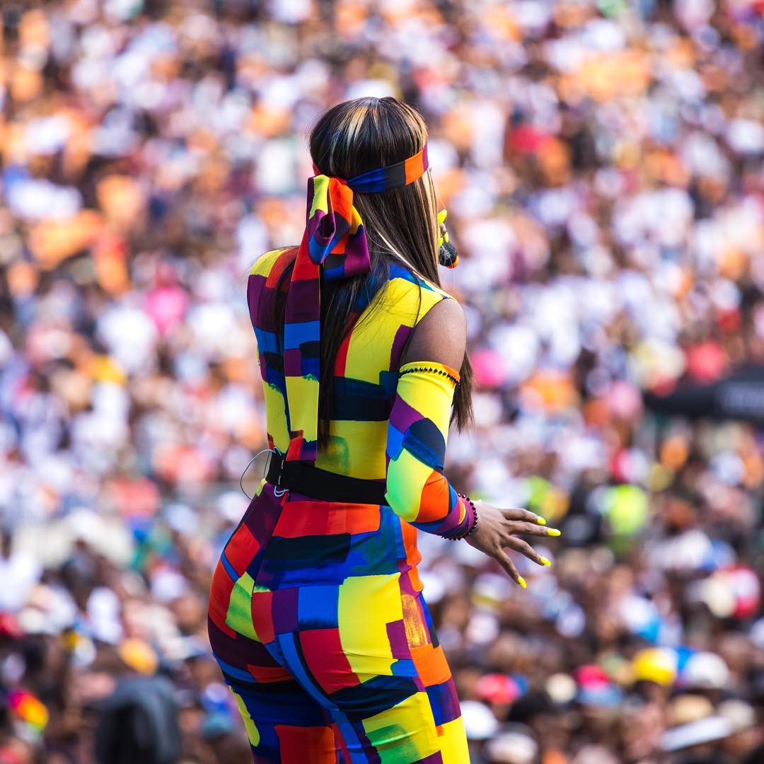 Super Star Singer “Tiwa Savage” Shines In Colorful Outfit As She Performs At The Global Citizen Show