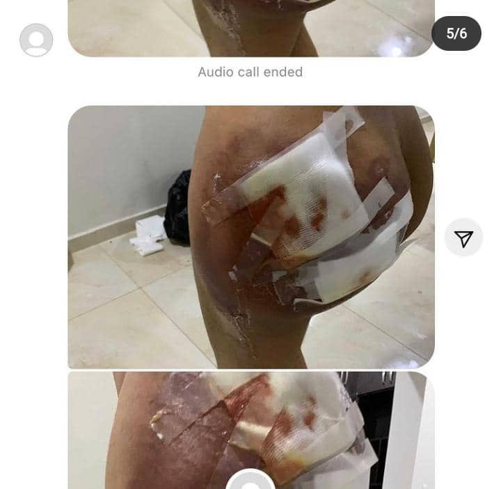 Now, a lady has shared disturbing photos of her botched procedure with Gist Lover’s blog. The anonymous patient said she didn’t know about Dr Anu’s track record and flew in from New York to undergo a butt enlargement surgery in Abuja.